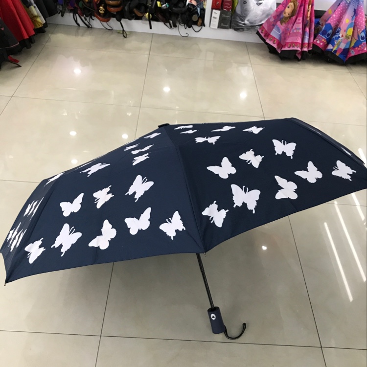 Item No. 3042B Water-Changing Butterfly Semi-Automatic Triple Folding Umbrella